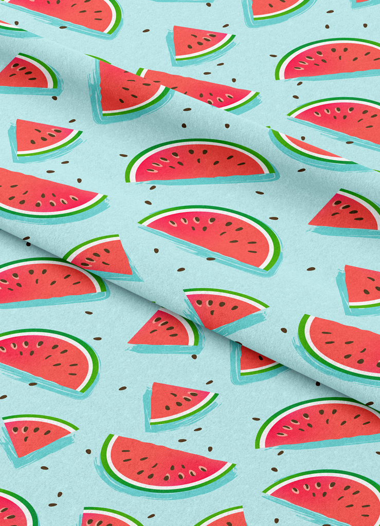 Tecido Microfibra Estampa Digital Melancia Fundo Azul 1,55m de Largura