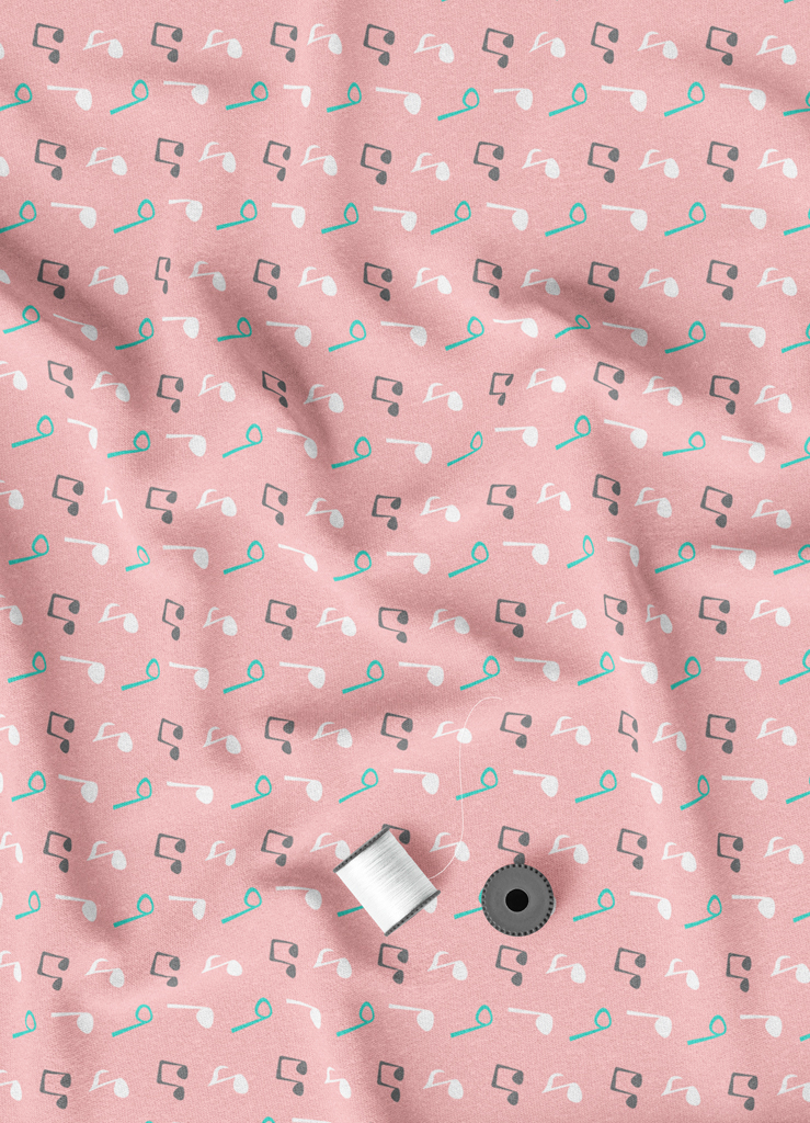 Tecido Microfibra Estampa Digital Nota Musical Azul Fundo Rosa 1,55m de Largura