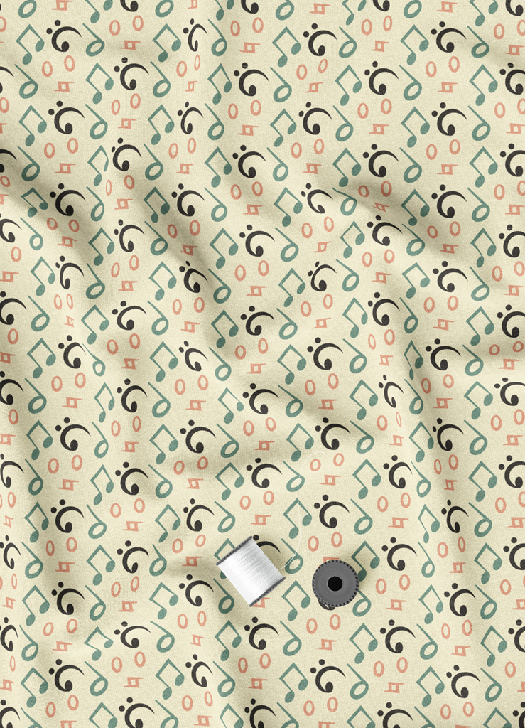 Tecido Microfibra Estampa Digital Notas Musicais Verde Fundo Palha 1,55m de Largura