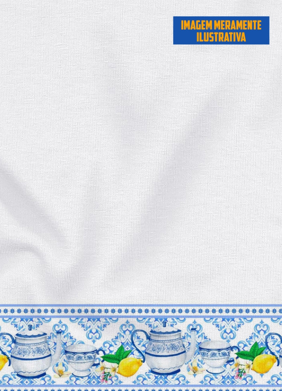 Tecido Microfibra para Barrado Estampa Digital Bule e Xícara 1,55m de Largura