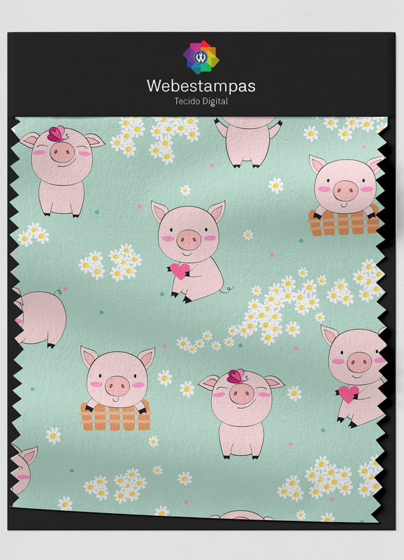 Tecido Microfibra Estampa Digital Porquinho Feliz 1,55m de Largura