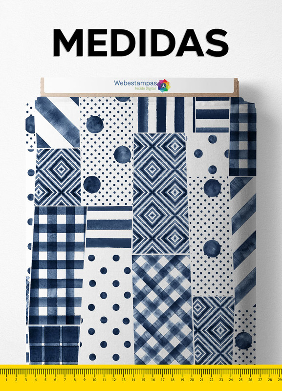 Tecido Microfibra Estampa Digital Recortes Formas Azul 1,55m de Largura