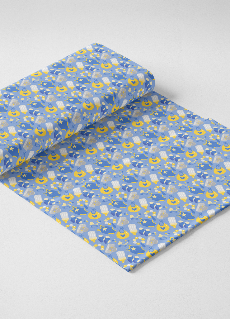 Tecido Microfibra Estampa Digital Roupinha e Mamadeira Azul 1,55m de Largura