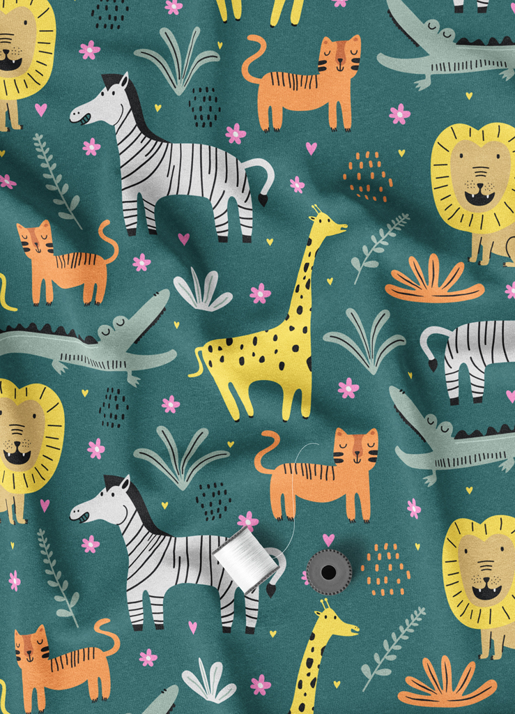 Tecido Microfibra Estampa Digital Savana Fundo Verde 1,55m de Largura