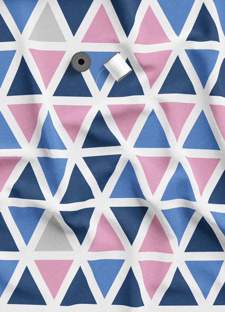 Tecido Microfibra Estampa Digital Triângulos Azul e Rosa 1,55 de Largura