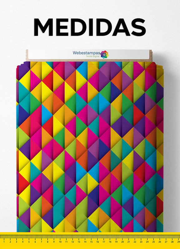 Tecido Microfibra Estampa Digital Triângulos Coloridos 3D 1,55m de Largura