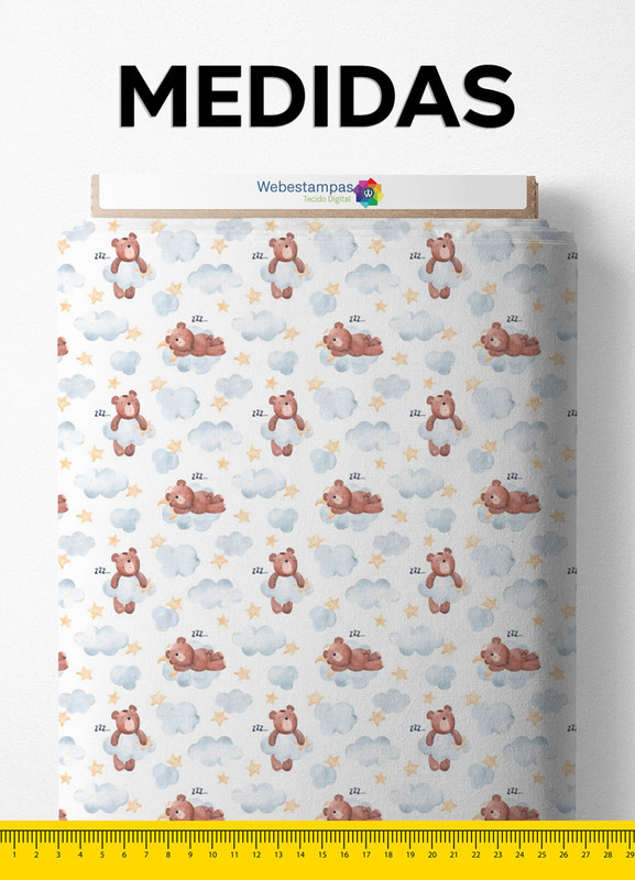 Tecido Microfibra Estampa Digital Urso na Nuvem 1,55m de Largura