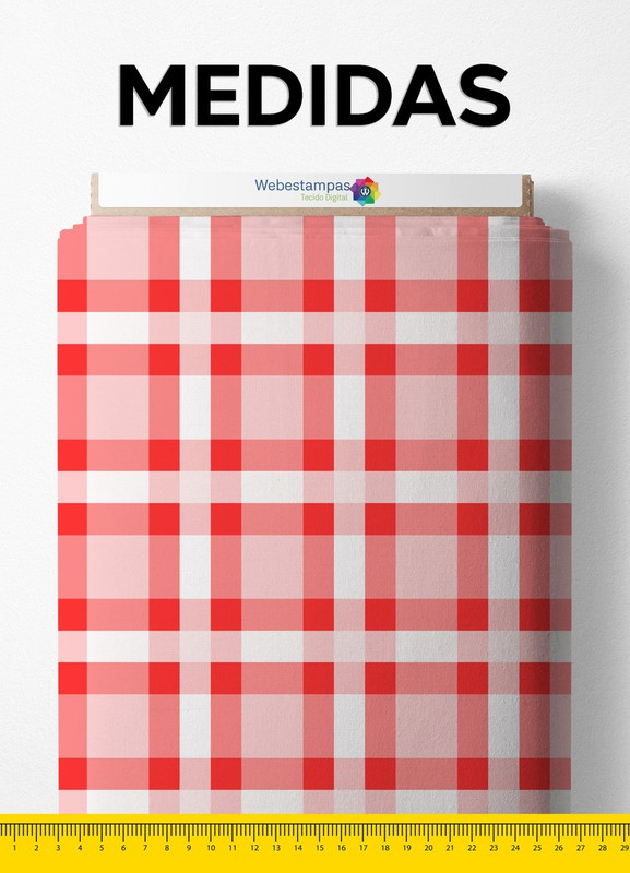 Tecido Microfibra Estampa Digital Xadrez Quadros Vermelho e Branco 1,55m de Largura