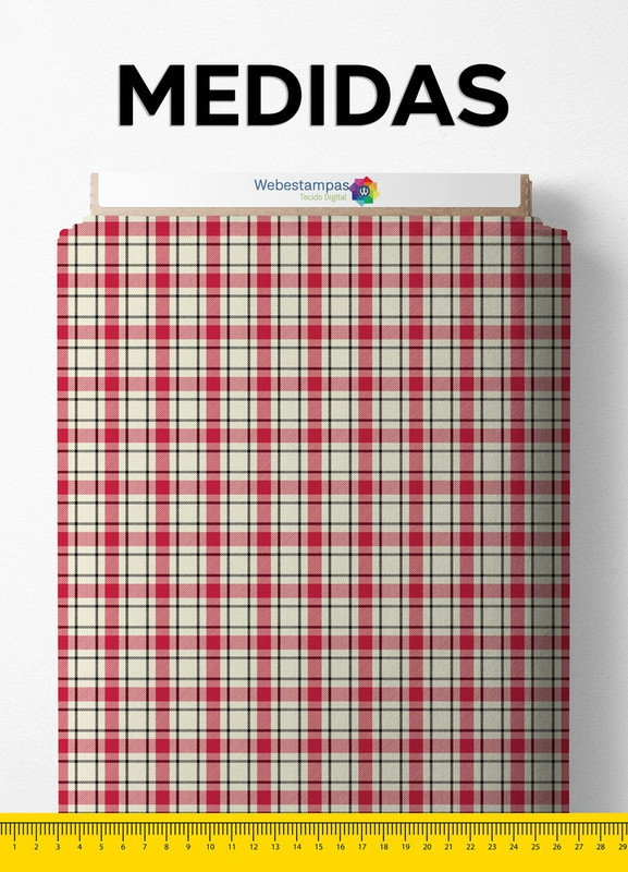 Tecido Microfibra Estampa Digital Xadrez Vermelho Preto e Palha 1,55m de Largura