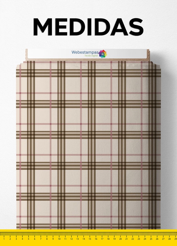 Tecido Microfibra Estampa Digital Xadrezinho Marrom Fundo Palha 1,55m de Largura