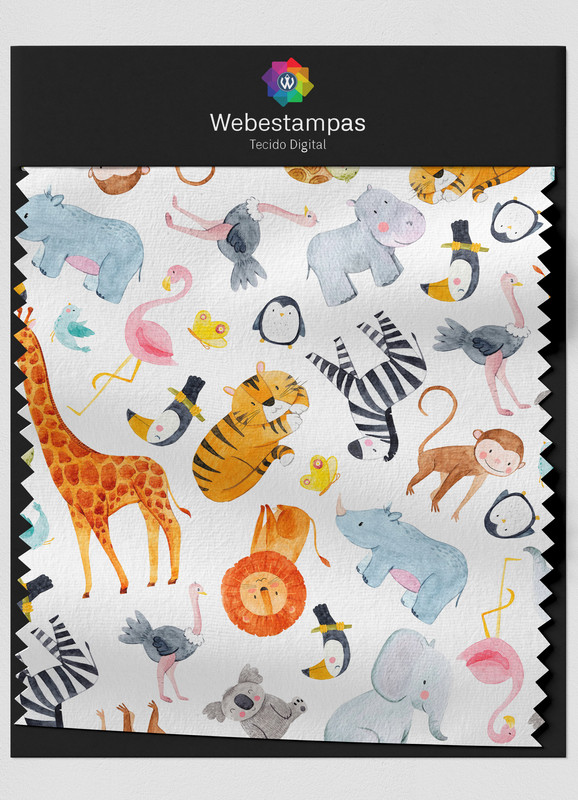 Tecido Oxford Estampa Digital Aquarela Zoo 1,55m de Largura