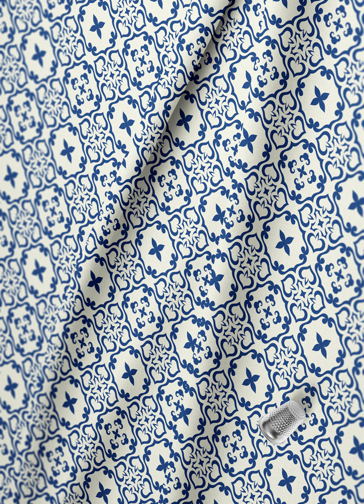 Tecido Oxford Estampa Digital Arabesco Azul Coimbra 1,55m de Largura