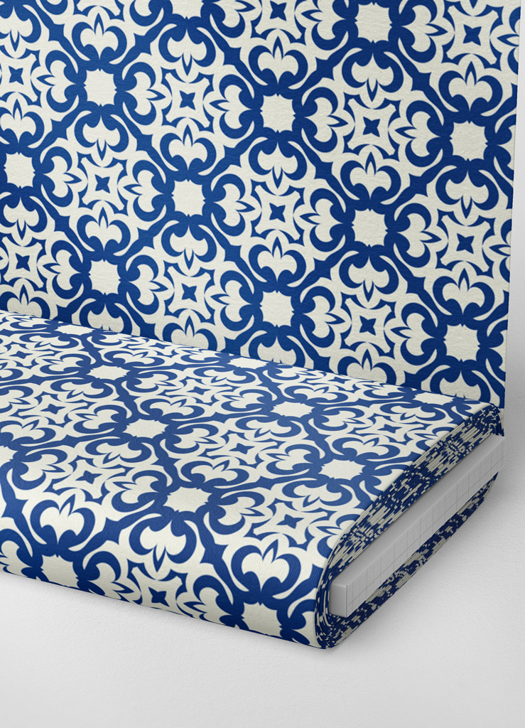 Tecido Oxford Estampa Digital Arabesco Azul Guimarães 1,55m de Largura
