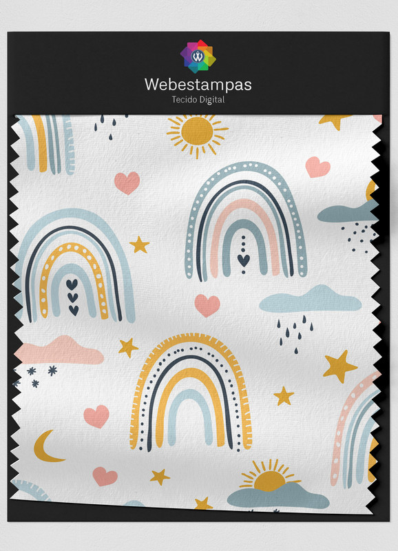 Tecido Oxford Estampa Digital Arco-íris, Corações e Estrelas 1,55m de Largura