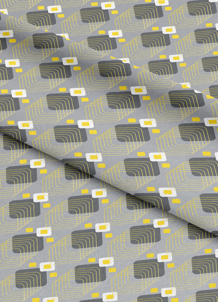 Tecido Oxford Estampa Digital Arcos Amarelos Fundo Cinza 1,55m de Largura