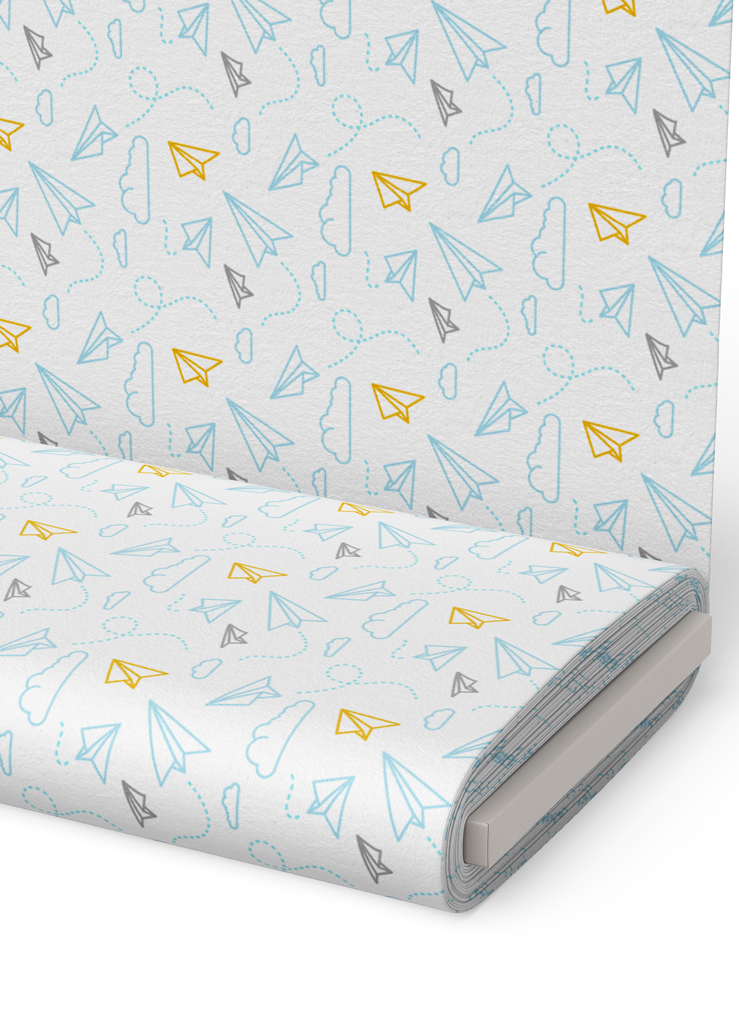 Tecido Oxford Estampa Digital Avião de Papel e Nuvem Azul 1,55m de Largura