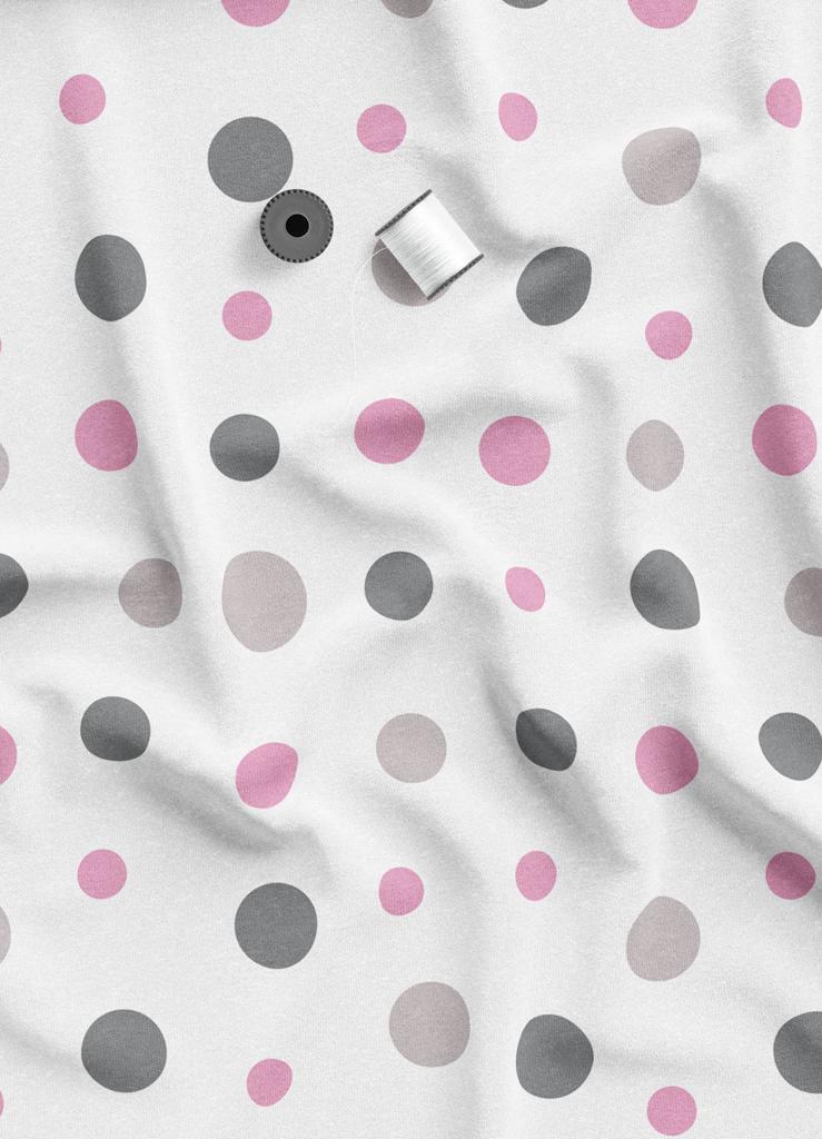 Tecido Oxford Estampa Digital Bolinhas Pink com Cinza 1,55 de Largura