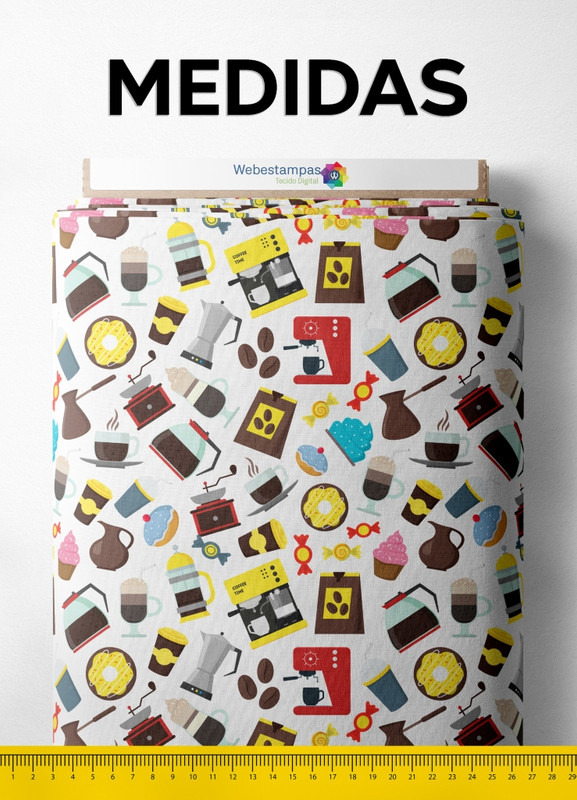Tecido Oxford Estampa Digital Café Colorido 1,55m de Largura