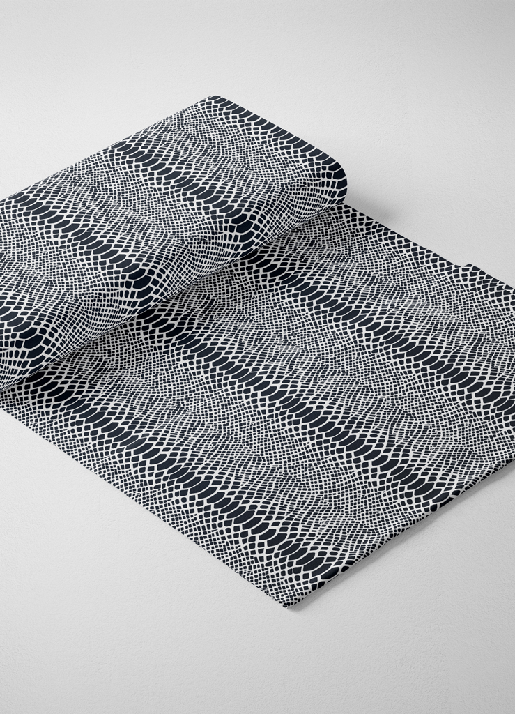 Tecido Oxford Estampa Digital Cobra branco fundo preto 1,55m de Largura