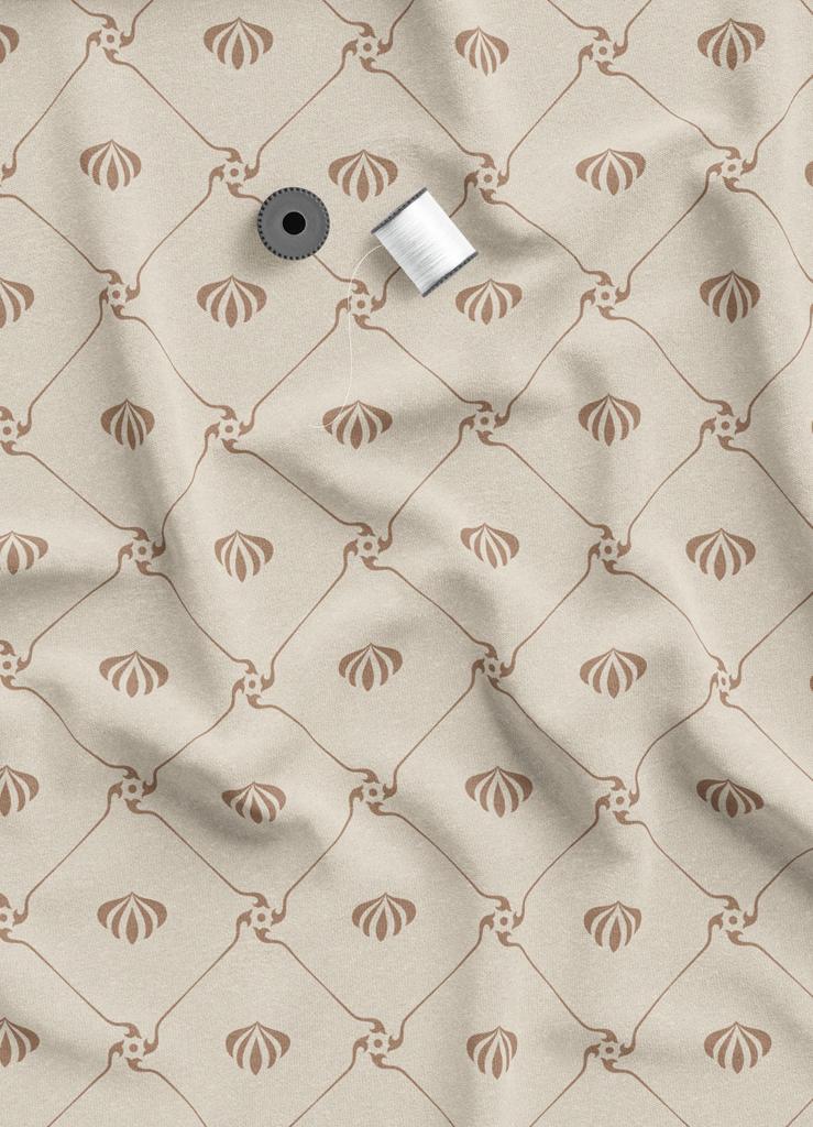 Tecido Oxford Estampa Digital Conchas Marrom Fundo Palha 1,55m de Largura
