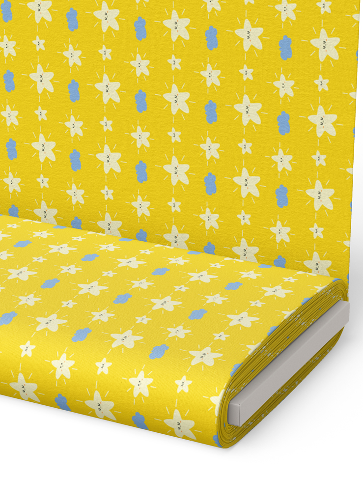 Tecido Oxford Estampa Digital Estrelinha Amarela e Nuvem 1,55m de Largura
