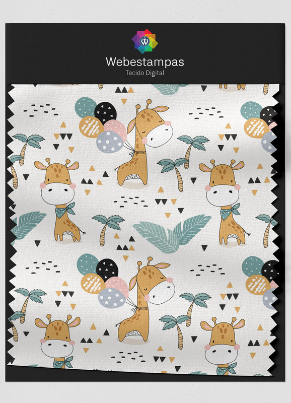 Tecido Oxford Estampa Digital Girafa e Balão 1,55m de Largura