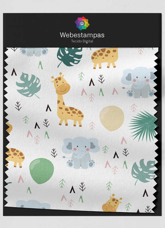 Tecido Oxford Estampa Digital Girafinha e Elefantinho 1,55m de Largura