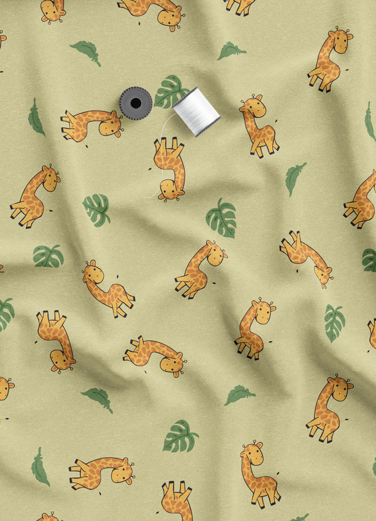 Tecido Oxford Estampa Digital Girafinha Fundo Verde 1,55m de Largura