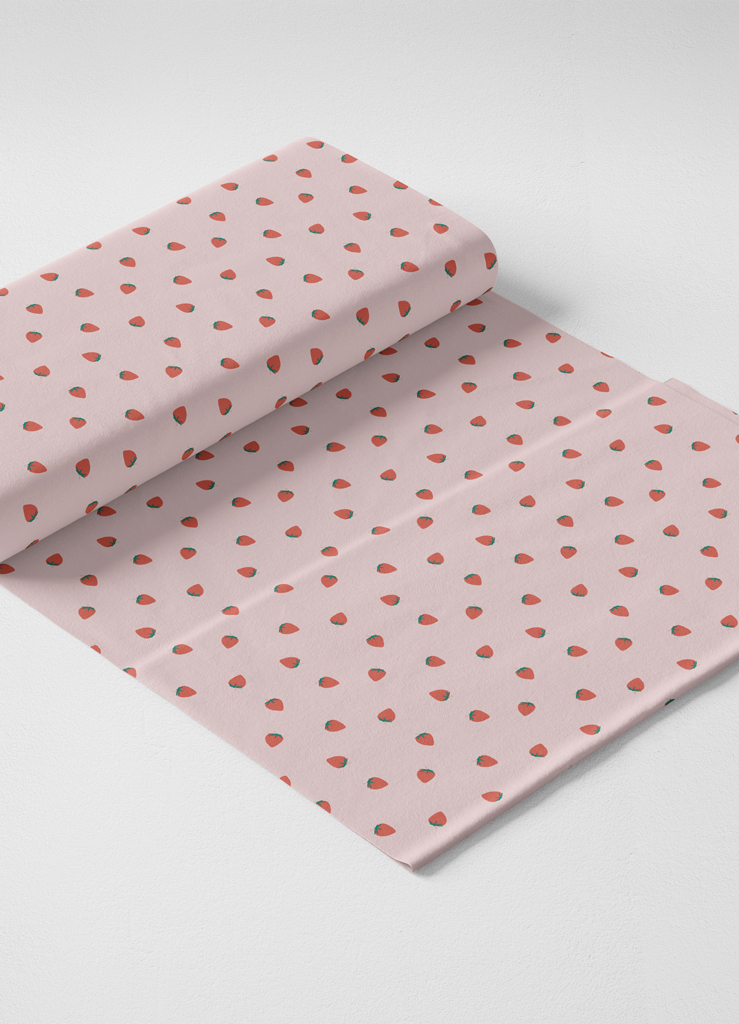 Tecido Oxford Estampa Digital Mini Morango Fundo Rosa 1,55m de Largura