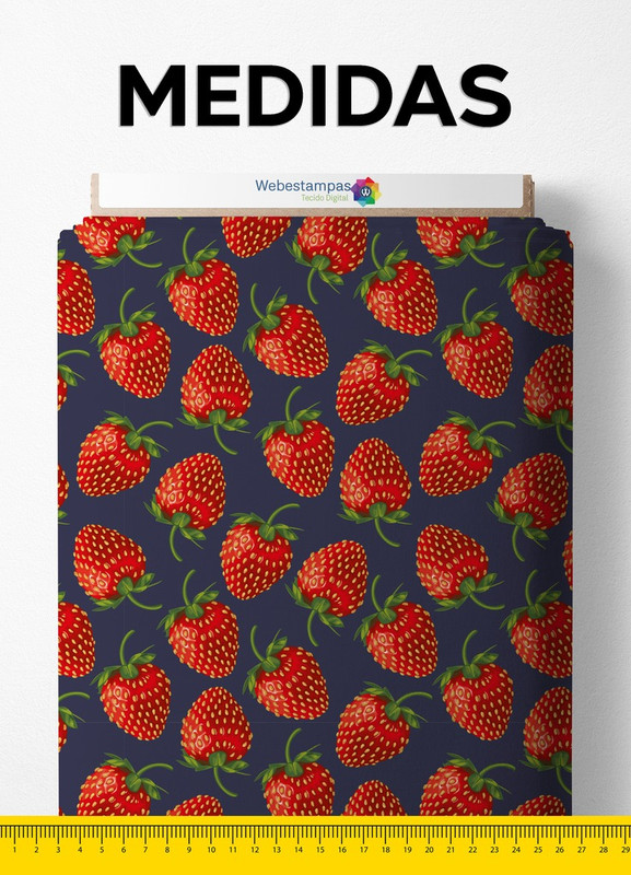 Tecido Oxford Estampa Digital Morangos Fundo Azul Marinho 1,55 de Largura