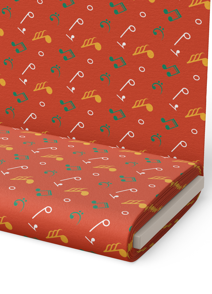 Tecido Oxford Estampa Digital Notas Musicais Coloridas Fundo Laranja 1,55m de Largura