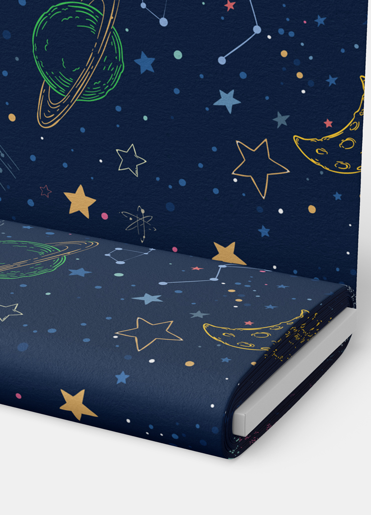 Tecido Oxford Estampa Digital Planetas Coloridos Fundo Marinho 1,55m de Largura