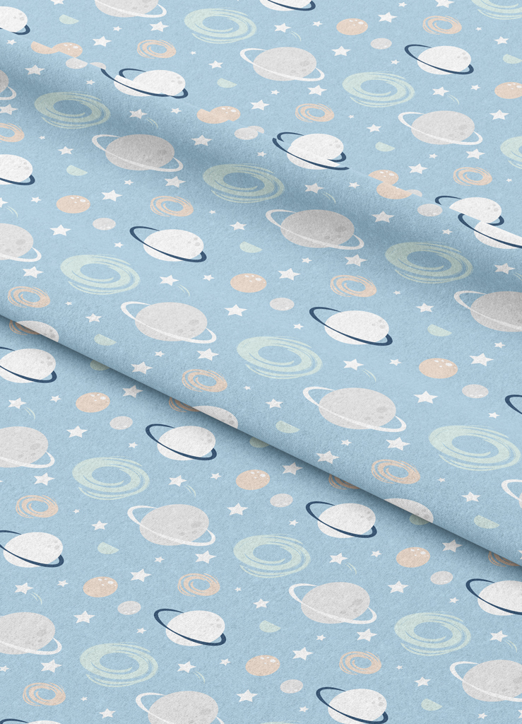 Tecido Oxford Estampa Digital Planetas Fundo Azul 1,55m de Largura