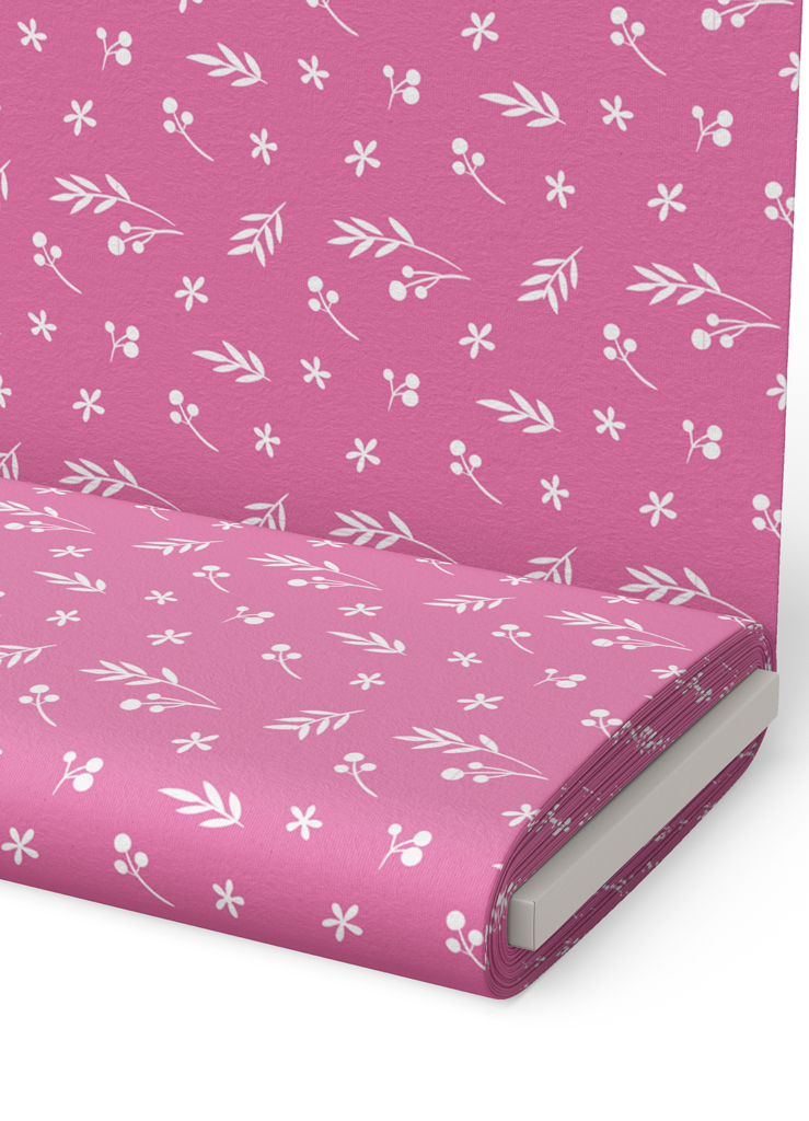 Tecido Oxford Estampa Digital Raminhos Branco Fundo Pink 1,55m de Largura