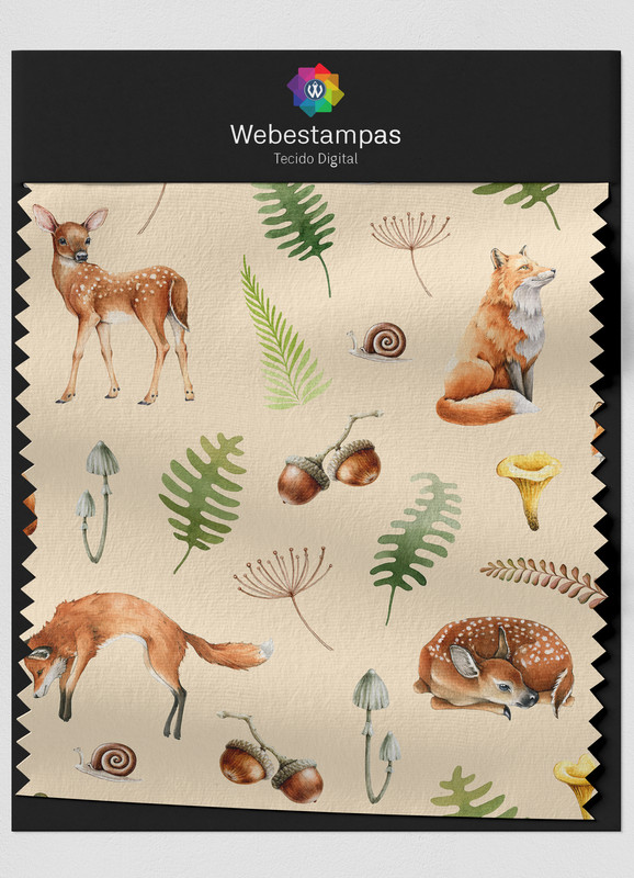 Tecido Oxford Estampa Digital Raposa e Veado 1,55m de Largura