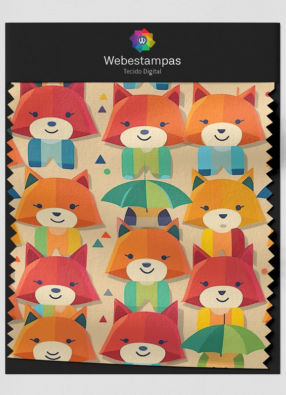 Tecido Oxford Estampa Digital Raposas Coloridas 1,55m de Largura