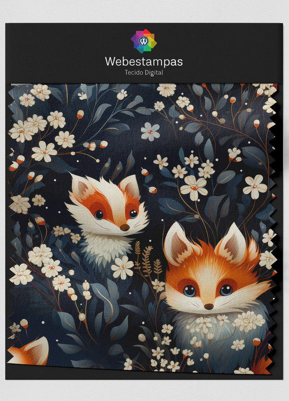 Tecido Oxford Estampa Digital Raposinha na Noite 1,55m de Largura