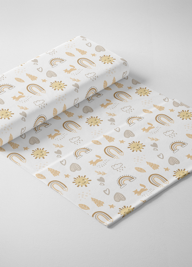 Tecido Oxford Estampa Digital Solzinho e Arco-Íris 1,55m de Largura