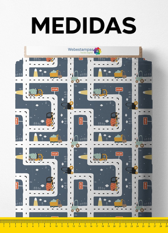 Tecido Tricoline Estampa Digital Carros na Cidade 1,55m de Largura