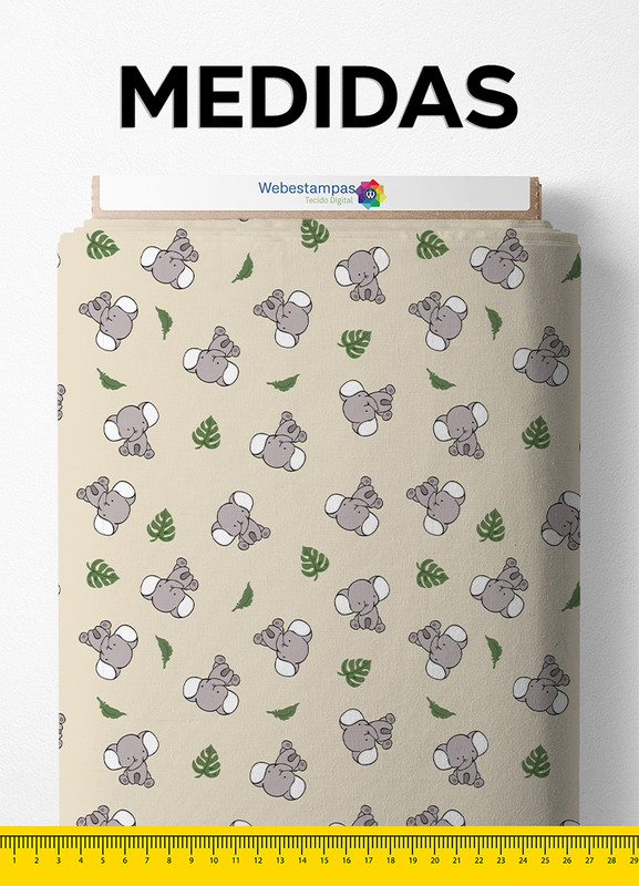 Tecido Tricoline Estampa Digital Elefantinho Fundo Palha 1,55m de Largura