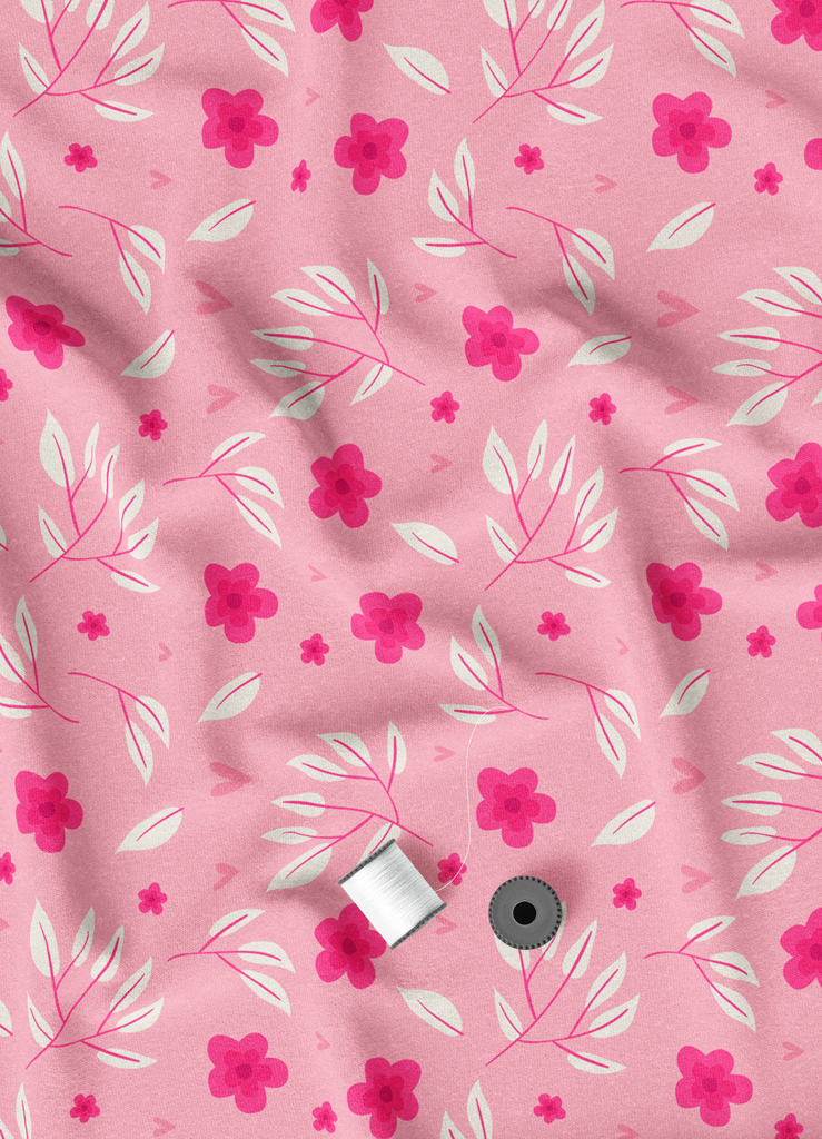 Tecido Tricoline Estampa Digital Flores Pink e Branco 1,55m de Largura