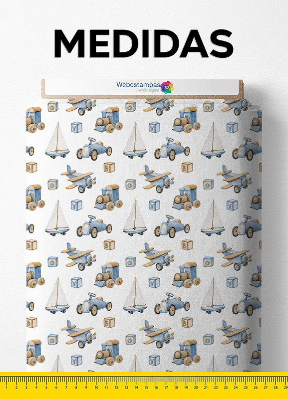Tecido Tricoline Misto Estampa Digital Brinquedos 1,50m de Largura