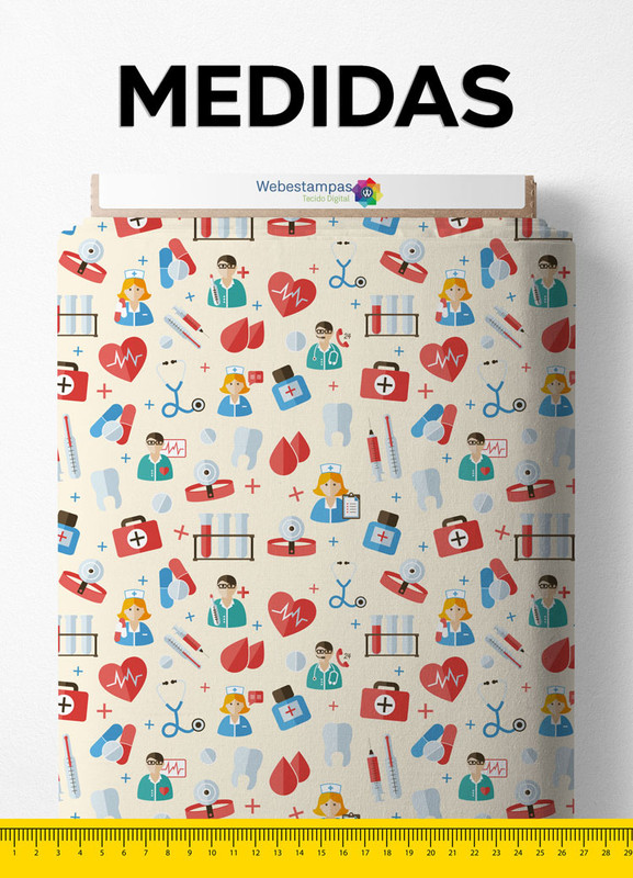 Tecido Tricoline Misto Estampa Digital Saúde 9 1,50m de Largura