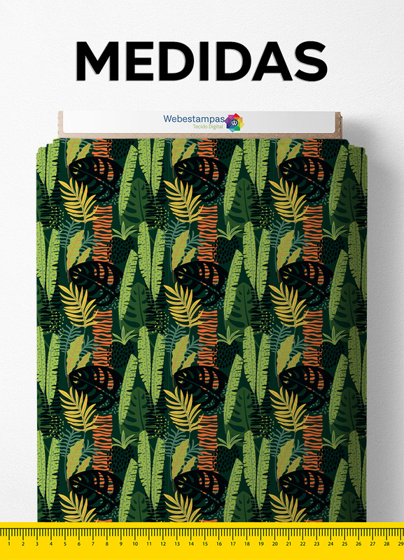 Tecido Velboa Estampa Digital Folhas Verdes e Pretas 1,55m de Largura