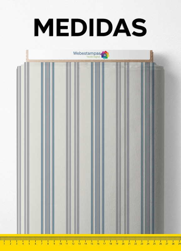 Tecido Velboa Estampa Digital Listras Azul Cinza e Palha 1,55m de Largura