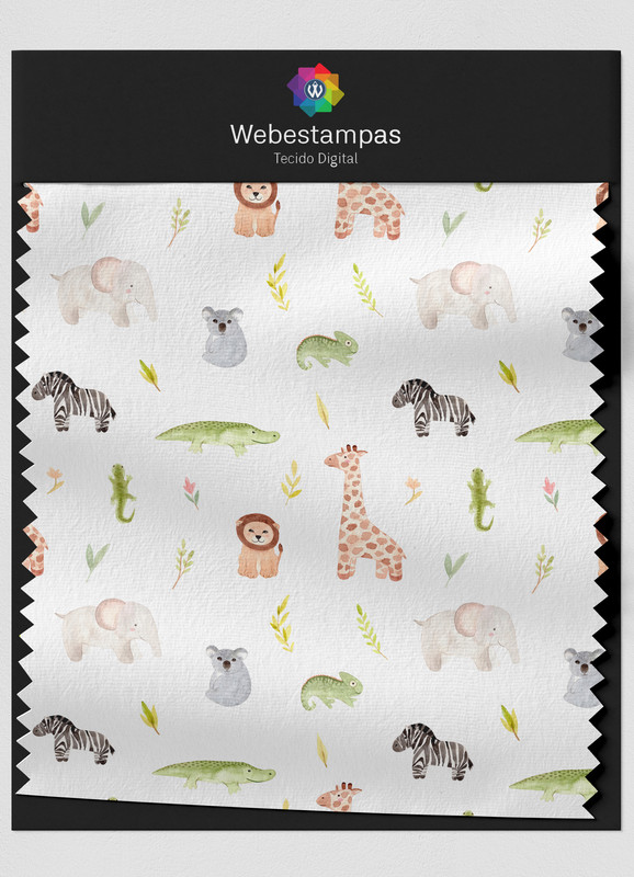 Tecido Veludo Estampa Digital Aquarela Bichinhos 1,55m de Largura