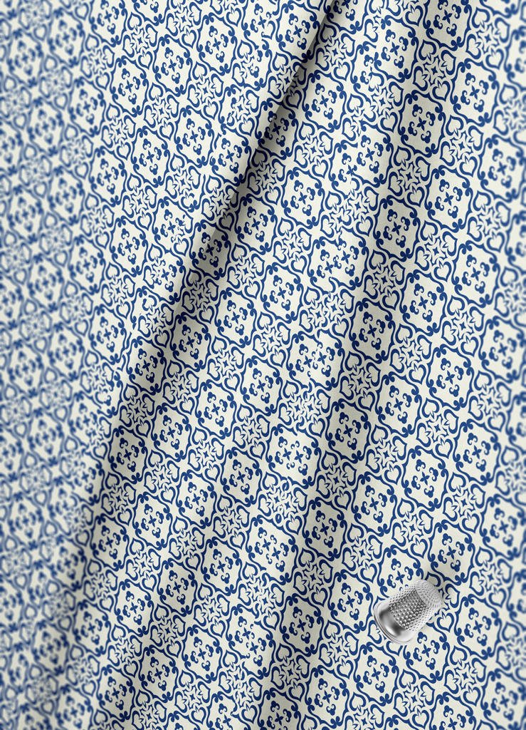 Tecido Veludo Suede Estampa Digital Arabesco Azul Realeza 1,40m de Largura