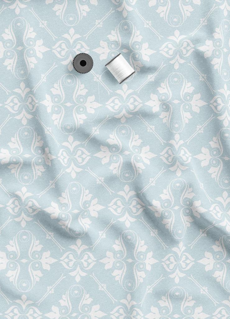 Tecido Veludo Suede Estampa Digital Arabesco Clássico Azul Claro 1,40m de Largura