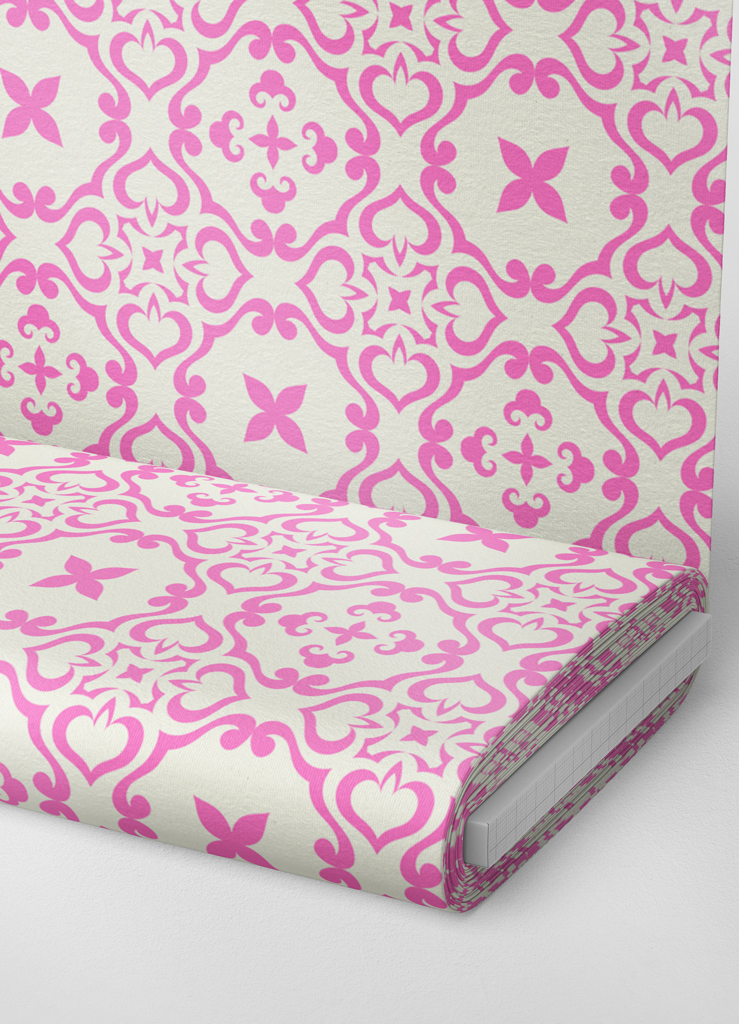 Tecido Veludo Suede Estampa Digital Arabesco Rosa Borboleta 1,40m de Largura