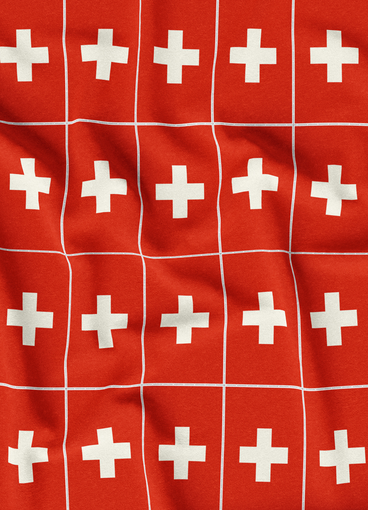 Tecido Veludo Suede Estampa Digital Bandeirinhas da Suíça 1,40m de Largura